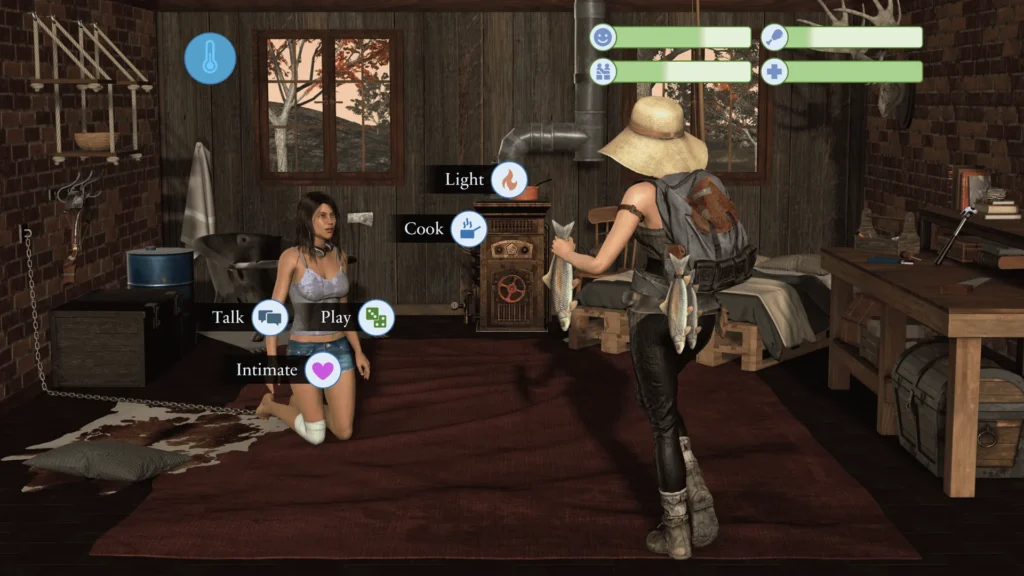 The setting of this post-apocalyptic zombie game is a character in itself. You’re not in a sprawling, ruined city; you’re holed up in a single, creaky cabin deep in the woods. This zombie uprising cabin setting creates an incredibly intimate and claustrophobic atmosphere. The world outside is a dangerous, unknown quantity, filled with the shambling remnants of humanity and other survivors who may not share your… unconventional approach to the undead.